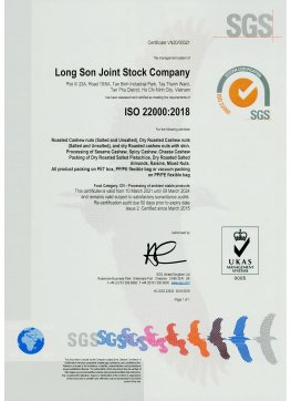 ISO 22000 - 2018 certificate
